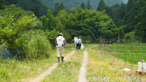 「大原に生息するオオムラサキとその生息する環境を保護することによって、オオムラサキが舞い飛ぶ自然豊かな里山の再生に努めるとともに、その活動を通じて大原に在住する人々や訪れる人々がその自然を理解し、豊かさを享受することを目的としています。」
